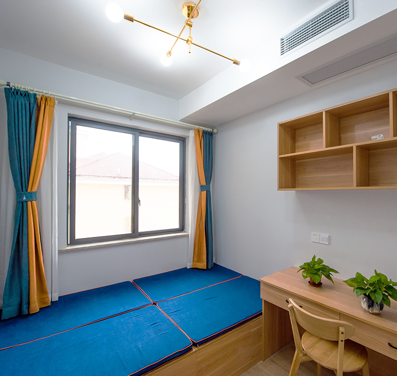 ▲榻榻米床,側(cè)面裝上置物柜和書桌,成了臥室,也是書房,一室兩用,不浪費空間,同時也能保證儲物性。