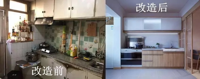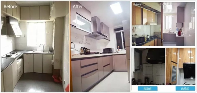 家里這么翻新一下 果然立馬就不同了 瞬間感覺像換了一套房子 接下來就帶大家 看幾組改造前后的對(duì)比照 ↓↓↓ 廚房是改造的重中之重 ▼