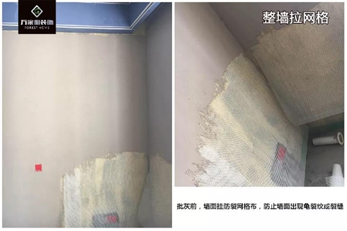 ★★★★★ 萬(wàn)家利裝飾在油漆階段時(shí),會(huì)在墻面批灰前進(jìn)行整墻拉網(wǎng)格布,可以有效地減少裂縫的產(chǎn)生。 油漆材料選擇芬琳漆——可以養(yǎng)金魚(yú)的乳膠漆,優(yōu)質(zhì)環(huán)保保障業(yè)主綠色安全的居住環(huán)境。