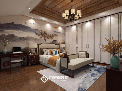 臥室化繁為簡(jiǎn),在造型基礎(chǔ)上極致簡(jiǎn)約,采用利落的線條來(lái)勾勒層次, 更加細(xì)膩、流暢地表達(dá)傳統(tǒng)文化中的精髓。