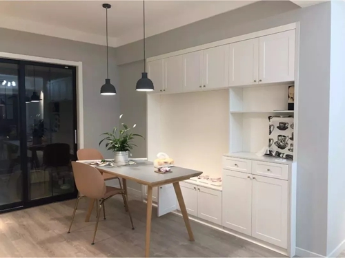 餐廳作為我們?nèi)粘3燥埖牡胤剑枰褂玫降臇|西和一些瓶瓶罐罐也是比較多的,可以在餐桌的邊上做個(gè)餐邊柜。