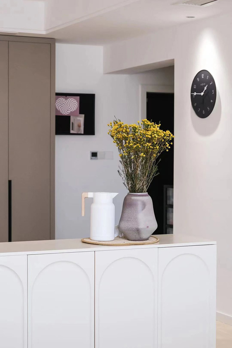 同樣 以文化和生活作為空間裝飾的主要材料是我們?cè)O(shè)計(jì)團(tuán)隊(duì)的座右銘。在形形色色的設(shè)計(jì)案例中,房子面積總有更大的,裝修用料總有更奢侈的,我們從不會(huì)以這些為追求。家居空間作為日常生活起居最主要的載體,最需要的是植入我們最真實(shí)的情感,亦如插畫入皿,大燕歸巢。這樣的設(shè)計(jì)不論手法是否高明,材料是否貴賤都是我們心中最好美好的樣子。(在最終效果呈現(xiàn)后我們的一輪滿意度訪問中,業(yè)主對(duì)施工和裝飾搭配效果非常滿意,唯一最大的遺憾就是當(dāng)時(shí)為了節(jié)省成本沒有換地磚和地板,在畫面中能很明顯的感覺到藝術(shù)中常帶有的缺陷美)
