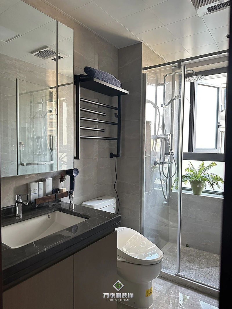 衛(wèi)生間的設(shè)計以簡約明亮為主,簡單的線條與裝飾,構(gòu)建一方舒適的洗漱空間。