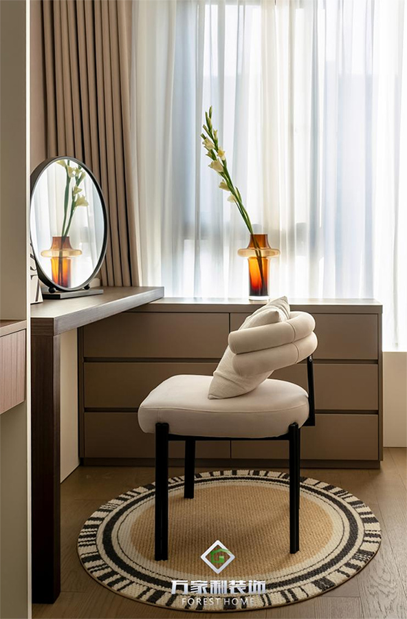 主臥懸空化妝臺設(shè)計,深受很多女業(yè)主青睞吧?平時梳妝或辦公都很實用,而且在打掃衛(wèi)生時也十分方便