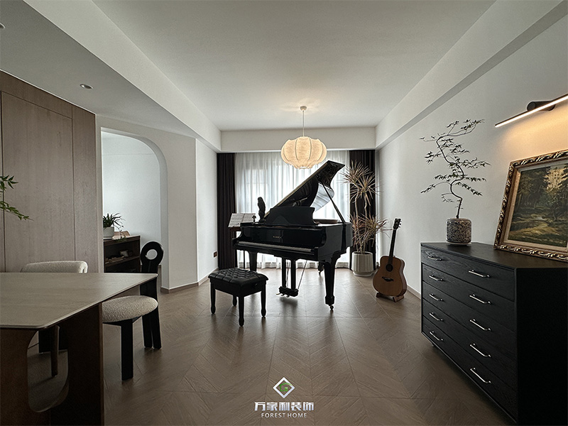 一進(jìn)門,鋼琴搶走客廳C位,藝術(shù)的氣息蜂擁而至。錯(cuò)落有致的空間布局讓人極度舒適,復(fù)古木質(zhì)地板與現(xiàn)代簡約線條的巧妙結(jié)合,既保留了復(fù)古的韻味,又不失現(xiàn)代感,空間內(nèi)穿插一些綠植讓空間有了“呼吸感”。