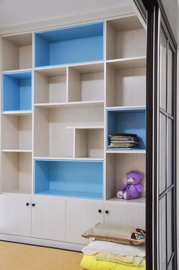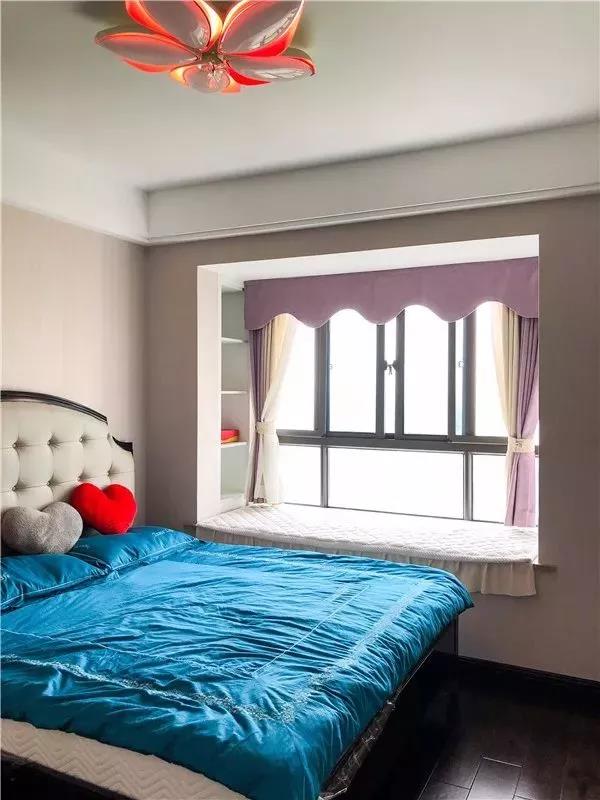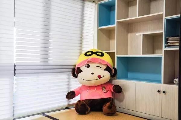 【兒童房】 兒童房把陽臺包進(jìn)了房間擴(kuò)大了小朋友的活動區(qū)域,原本與客廳陽臺的通道做成了柜子,設(shè)計(jì)師可不放過任何的儲物空間啊。 藍(lán)白色的窗簾,搭配素色的墻紙,簡潔大氣。這個燈也是網(wǎng)友特地挑選的可以講故事、唱歌的,滿滿的都是愛哦~~