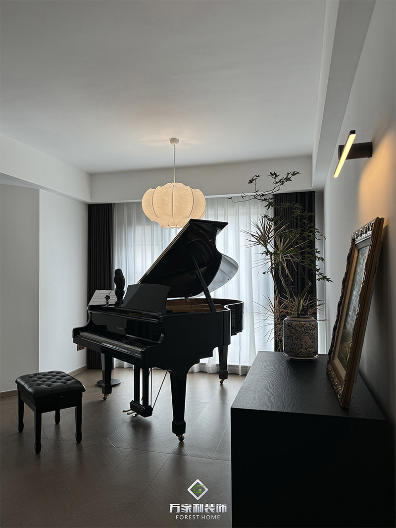 一進(jìn)門,鋼琴搶走客廳C位,藝術(shù)的氣息蜂擁而至。錯(cuò)落有致的空間布局讓人極度舒適,復(fù)古木質(zhì)地板與現(xiàn)代簡約線條的巧妙結(jié)合,既保留了復(fù)古的韻味,又不失現(xiàn)代感,空間內(nèi)穿插一些綠植讓空間有了“呼吸感”。